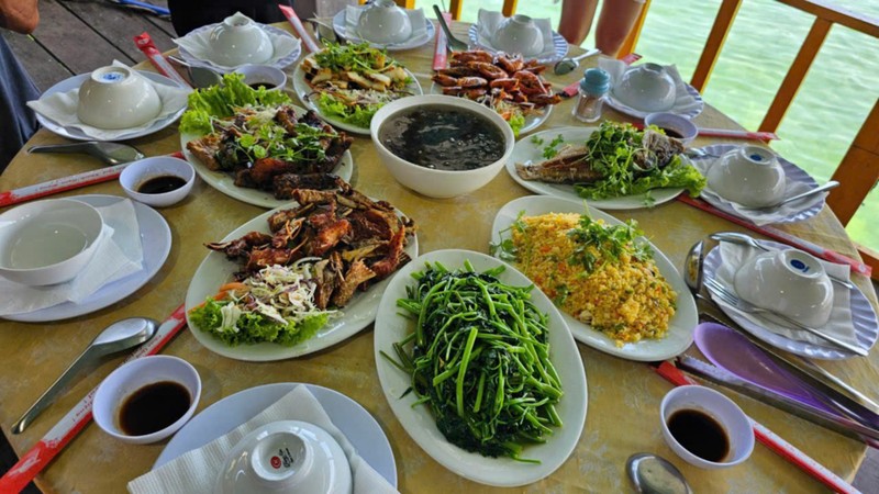 - Обед-барбекю подается в формате общего сет-меню, в него входят разнообразные блюда: морепродукты на гриле, мясо, курица, жареный рис с морепродуктами, овощи, фрукты и др.