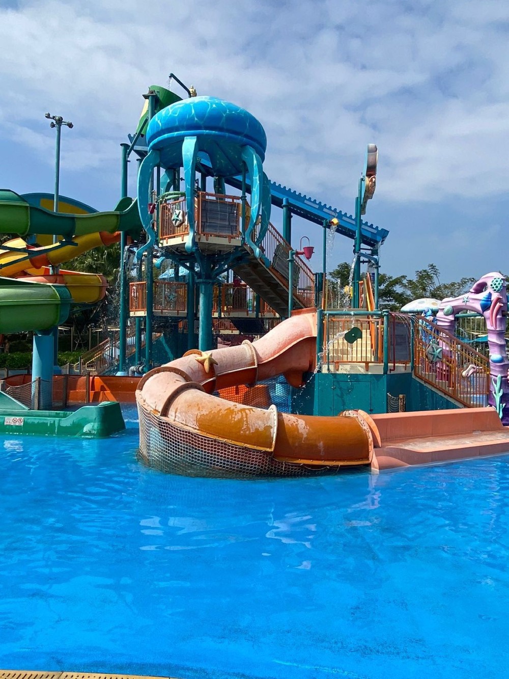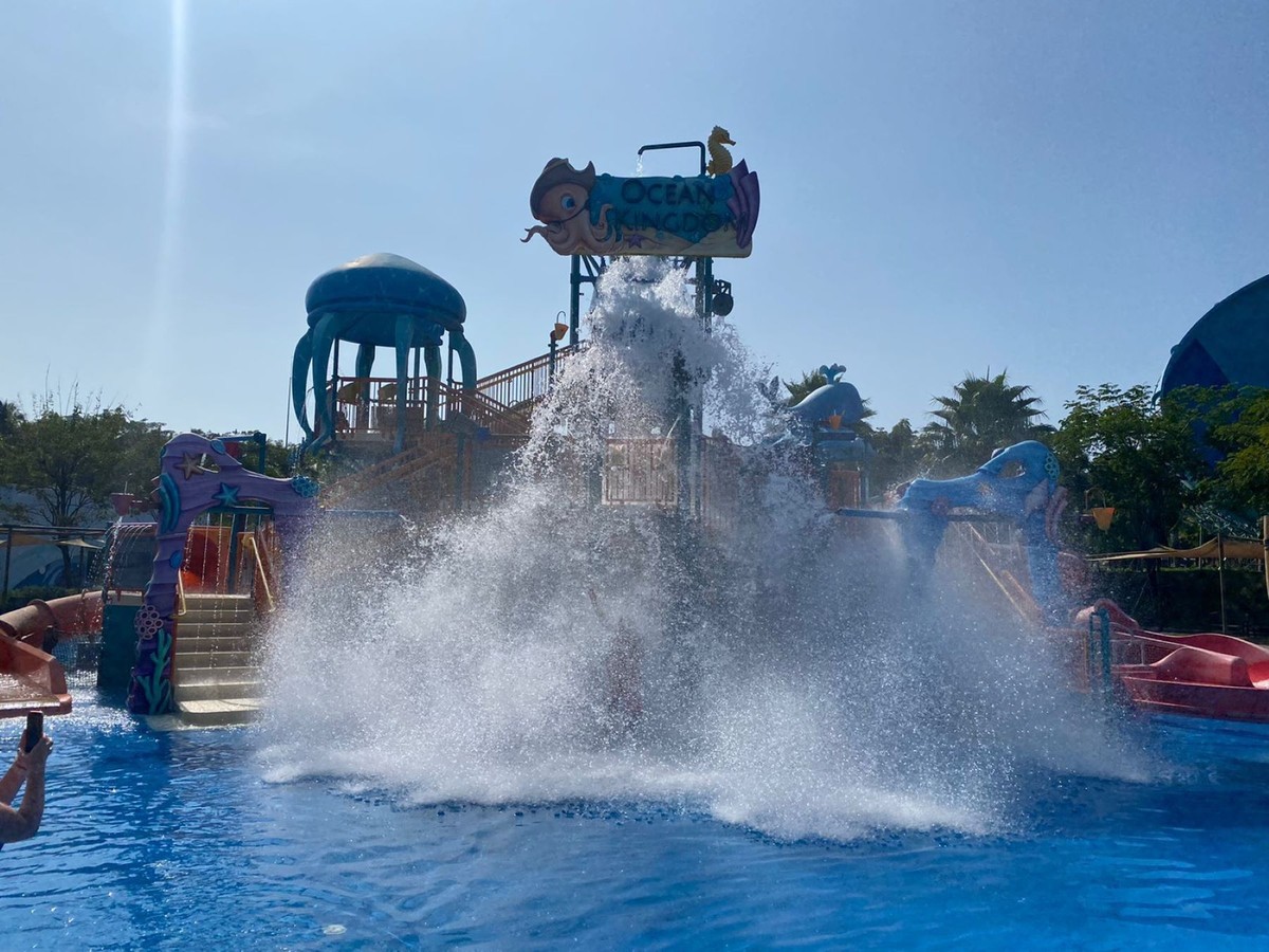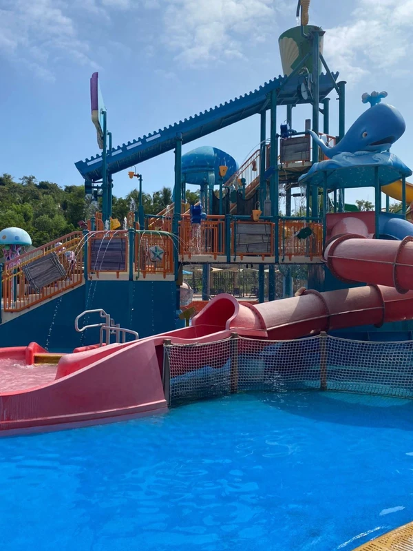 На территории аквапарка — огромное количество различных горок: например, Tornado и Eye of the Storm — вихревые потоковые горки, Океанская крепость, детские горки — Перепрыгивающий с острова на остров, Маленький моряк, Радужный водопад, Битва мыльных пузырей. Также на территории много бассейнов с шезлонгами и даже есть искусственная река, где можно сплавляться на надувных кругах.