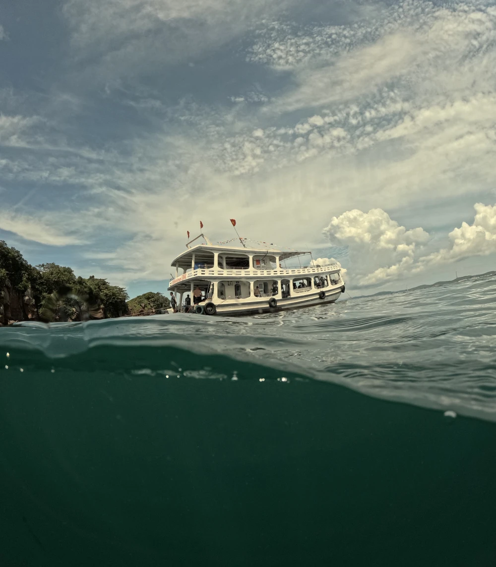 " На борту двухэтажного катера вас встретит русскоговорящий инструктор. Он всё подробно объяснит: как пользоваться маской и регулятором, дышать под водой и общаться жестами. Перед началом вы немного поплаваете на поверхности, чтобы привыкнуть к снаряжению и почувствовать себя уверенно. А затем погрузитесь в воды залива. "